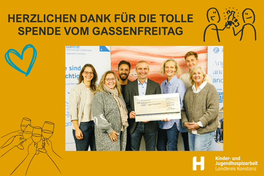Die Gassenfreitage 2025 in Konstanz sind vorbei – doch die wunderbare Stimmung und das große Engagement bleiben in Erinnerung. Wir von der Kinder- und Jugendhospizarbeit möchten uns ganz herzlich bei Bantle Versicherungen bedanken. Das Team hat sich entschieden, den Erlös aus den Gassenfreitagen an uns zu spenden – und so konnten beeindruckende 2.000 € zusammenkommen. Mit dieser Unterstützung können wir unsere Arbeit fortsetzen und Kinder, Jugendliche und ihre Familien in schweren Lebenssituationen begleiten und stärken.